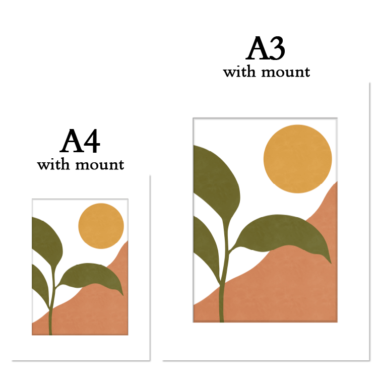 Size | A4 inc. Mount, A3 inc. Mount, A4, A3, 12×16, 8 x A5, 4 x A4, 2 x A3, A2, 16×24, A1 |